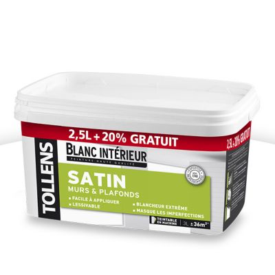 J'ai l'impression que cela vaut le coup a ce prix mais est la même qualité que les peintures pro. Lessivable, notre peinture satinée acrylique convient parfaitement aux chambres. Peinture 10 litres pas cher. Je vend de la peinture tollens mat en tine de 3 litres. Castorama fait une promo sur une peinture tollens acrylyque sous couche pour plaque de platre (10 litres + 20% = 12 litres) pour le prix de 39,90 euros soit 3,33 euros le litre.